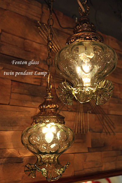 【2連式】FENTON(フェントン)社 ツイン ペンダントランプ アボカドグリーン