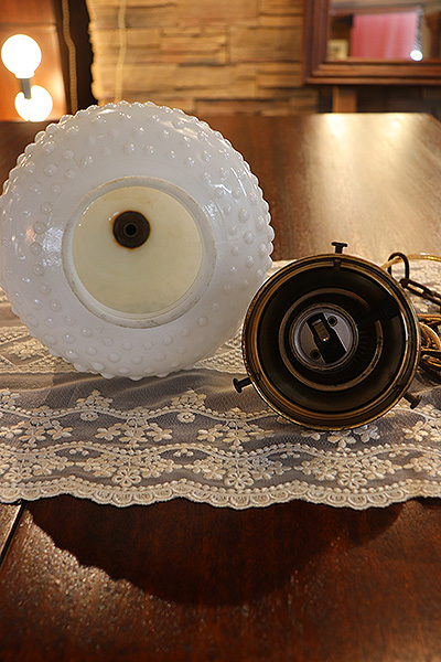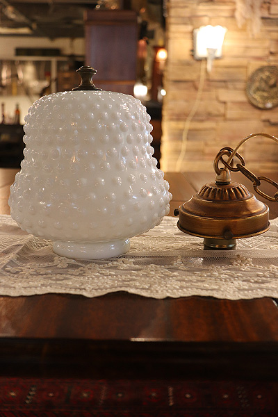 アーリーアメリカンヴィンテージ「ホブネイルミルクグラス ハンギングランプ(ペンダントランプ)」です。