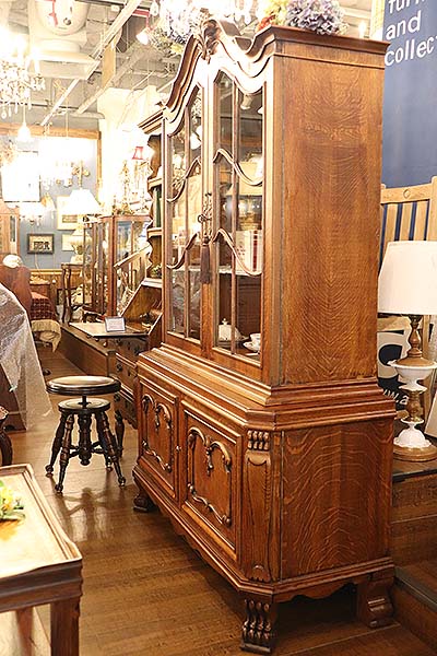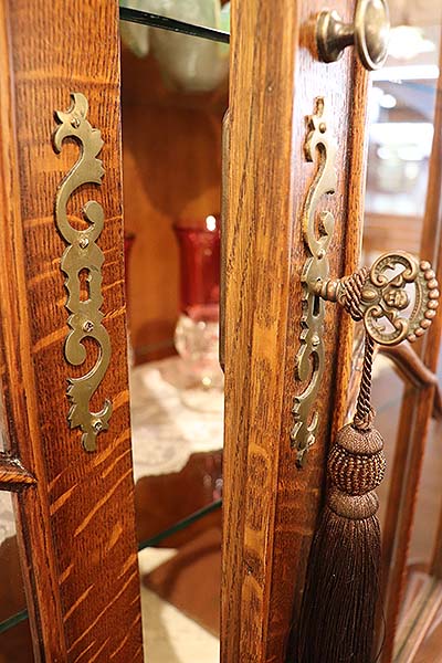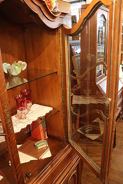 【鍵付き】フレンチ オークカップボード/ガラスキャビネット