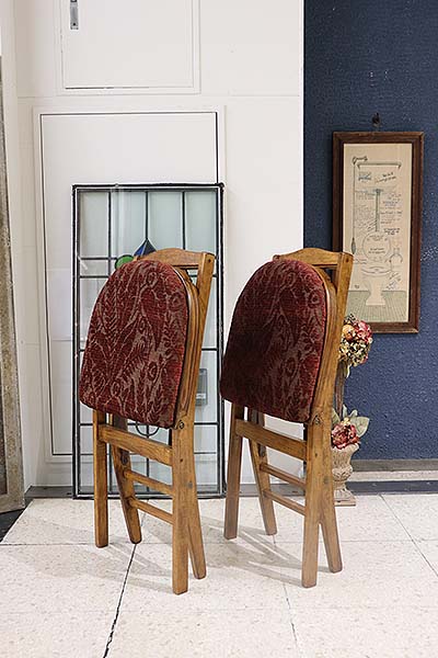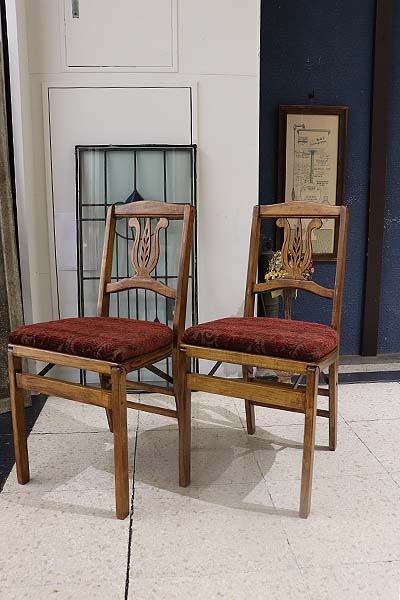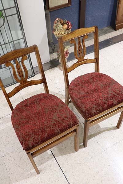 【2脚セット!】メイプル フォルディングチェア(折り畳みチェア) 張替済