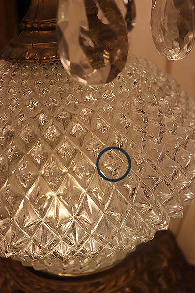 凹凸のデザインが素敵なカットグラスの1カ所、角の部分が欠けている部分があります。米粒より小さなチップです。