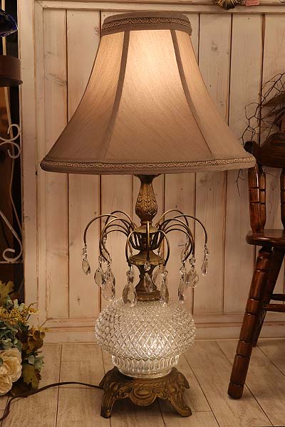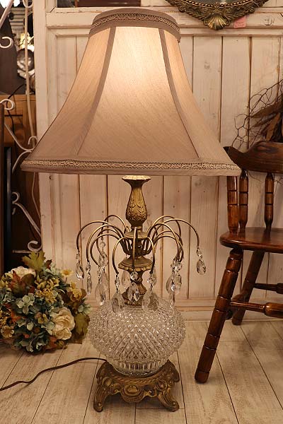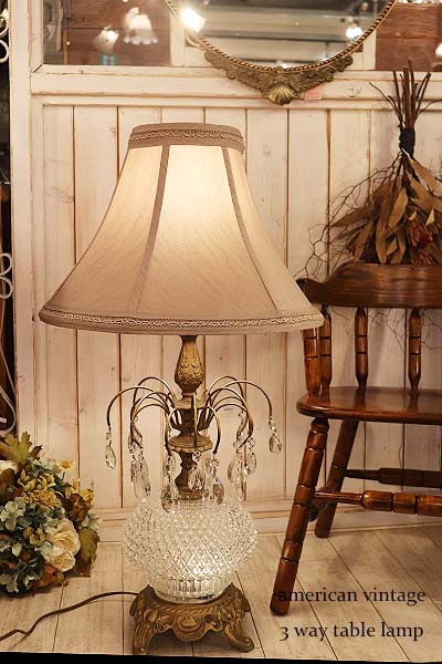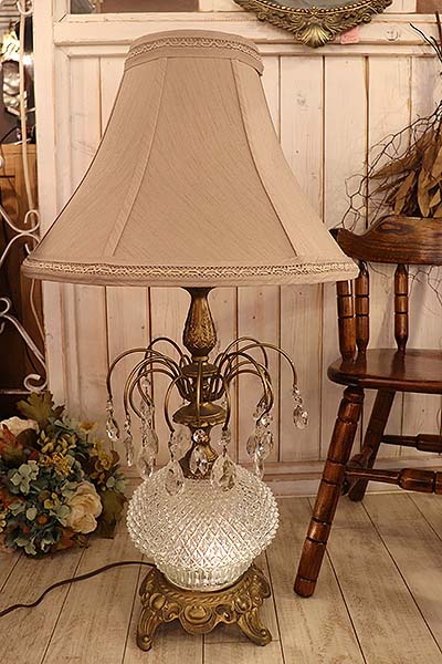 【LED球付き】3 way プリズムグラス テーブルランプ &グレイッシュフレアシェード