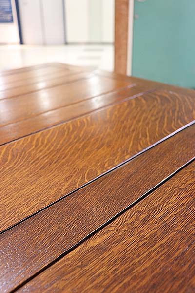 研磨作業による古い塗装の剥離と着色、ウレタン塗装を施していますので