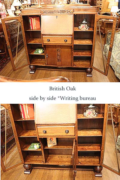 【鍵付き】英国オーク ライティングビューロー/サイドバイサイド
