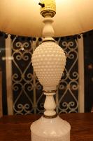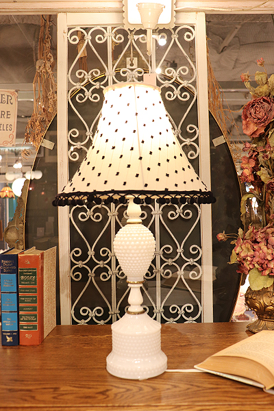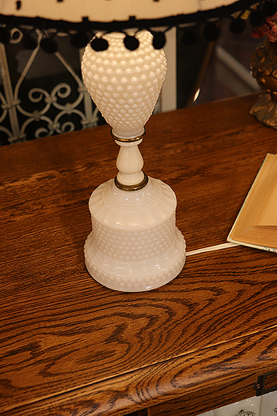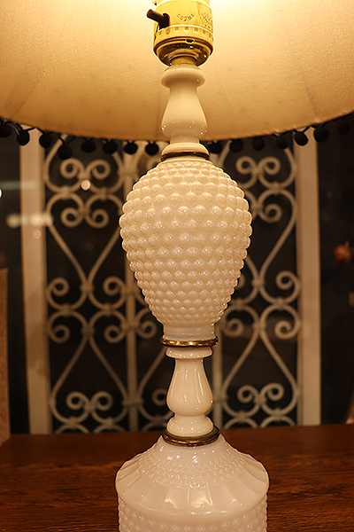 アメリカンヴィンテージらしいホブネイル模様のミルクグラス製ベース。