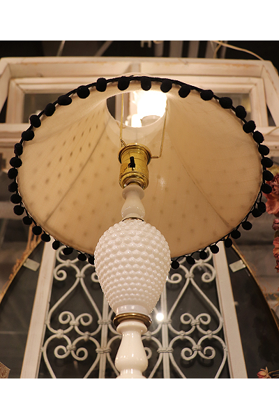 【LED球付き】ホブネイルミルクグラス テーブルランプ & 四つ葉のドットコットンェード
