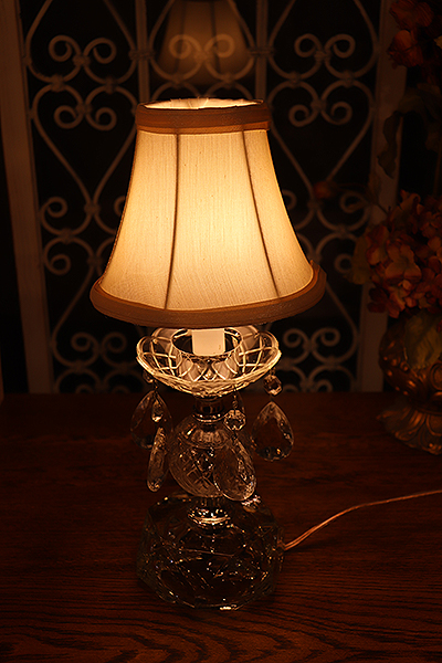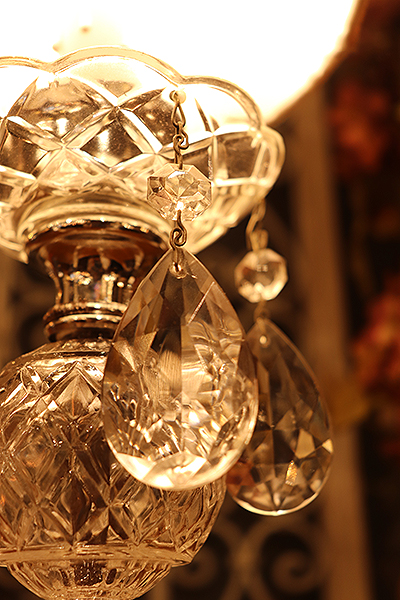 揺れるプリズムパーツをあしらったエレガントなランプ。