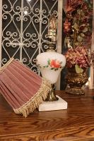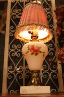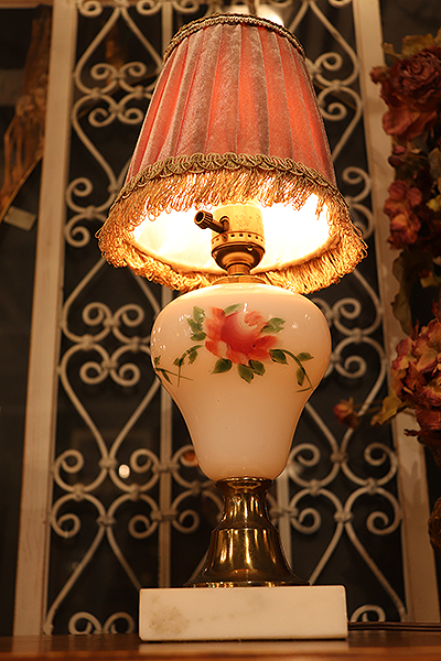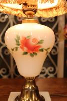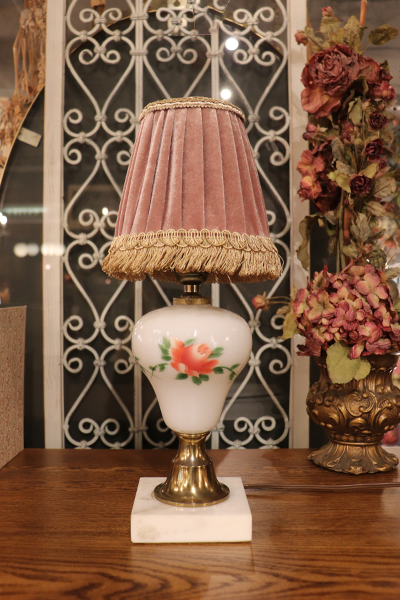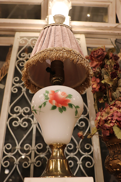 【LED球付き】ローズの描かれたミルクグラス テーブルランプ & ヴェルヴェットシェード