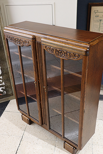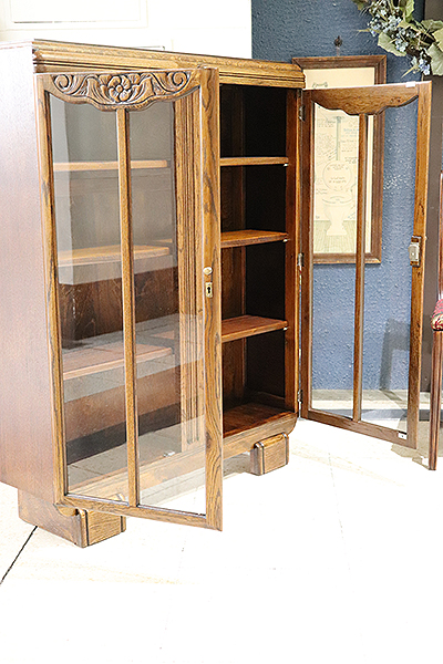 【鍵付き】英国オーク ブックケース/ガラスキャビネット