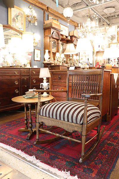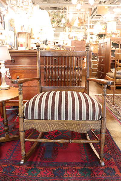 無垢のオークで造られた、安定感と包まれるような心地よさが魅力のロッキングチェア。