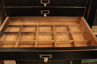 引き出しの内部は、歯科医療器具を分類して収納できるように設計されており、