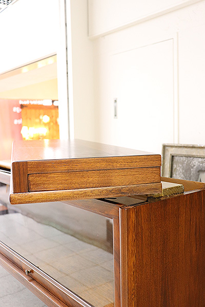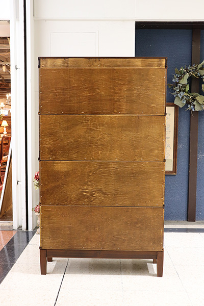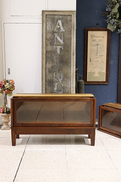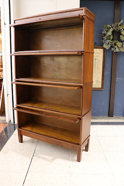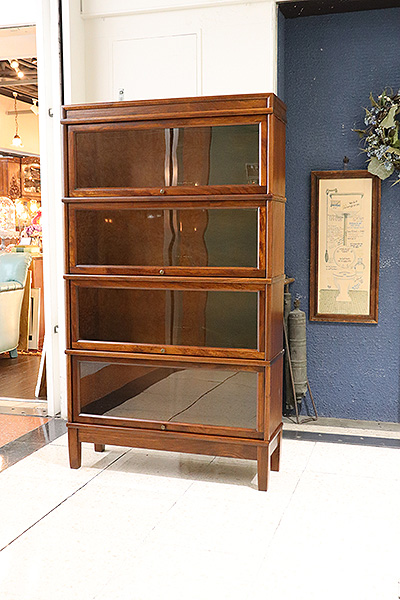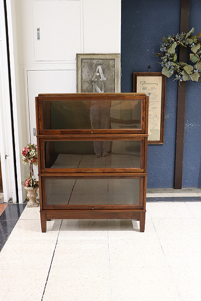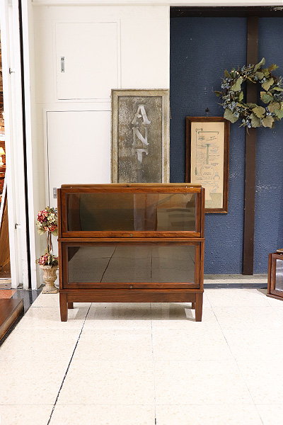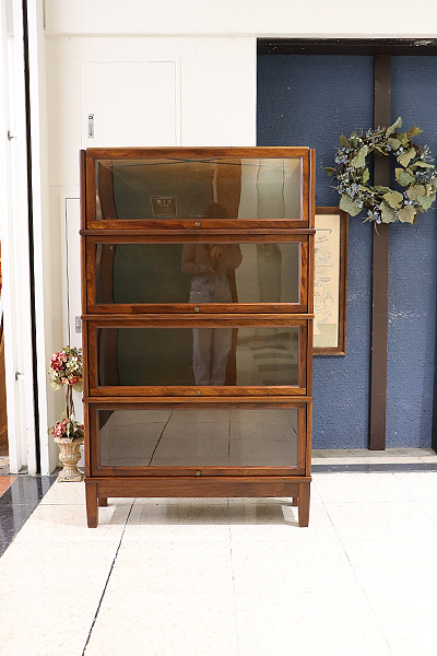 図書館や法律事務所で使用されていた実用家具で、スタッキング(積み重ね)構造と、フラップ式ガラス扉が特徴です。
