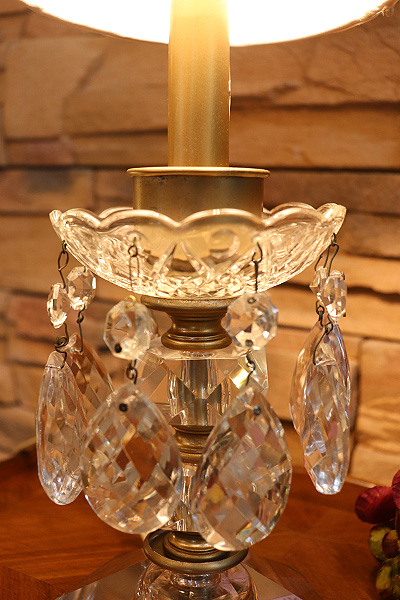 ガラスの台座 オールドプリズムグラス テーブルランプ 【ランプシェード付き】