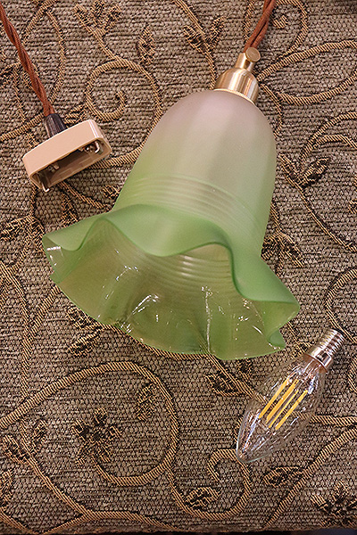 | ■コンディション | 配線・ソケット・金属部 新品交換済 /口径:E14 LED球対応可 /ガラス:使用感有 割れ、ひび無し | ||