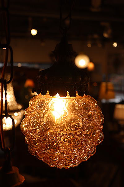 3灯式 シャンパンアンバー バブルグラスハンギングランプ 吊下げ照明