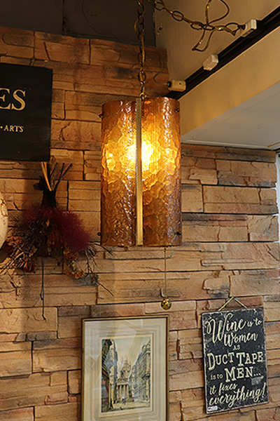 アメリカ製1960年代のヴィンテージ照明、アンバーガラスのペンダントランプです。
