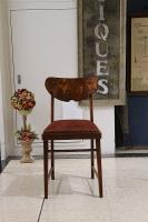 北欧デザインの影響を感じさせる、ミッドセンチュリー期のヴィンテージチェアです。背もたれから座面へとつながるやわらかな曲線が、軽やかで心地よい佇まいを生み出しています。